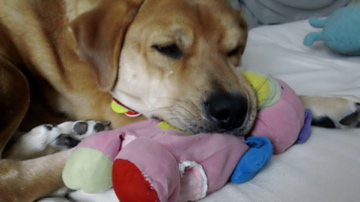 And the Mommy of the Year award goes to a neutered, middle-aged, red dog whose favorite hobbies are surreptitious sleeping on the furniture and overt cleaning of his ass. “He just makes me happy,” says his son.