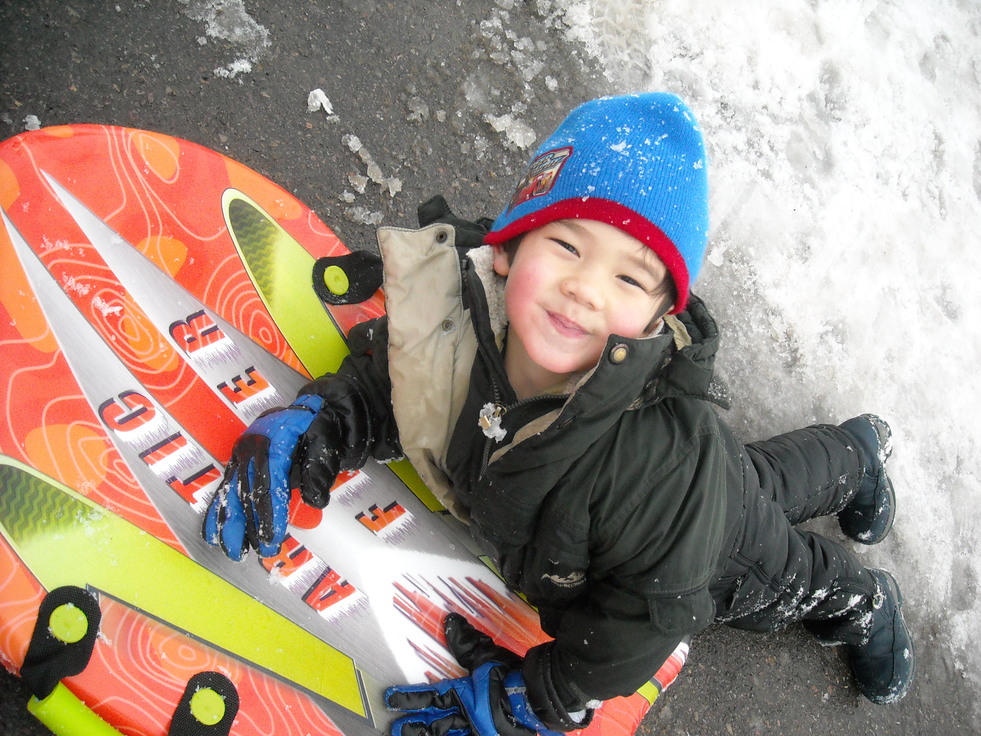 Grabbing one of our sleds, I sped down the hill to prevent her from making our social faux pas worse. We left shortly thereafter. As we were leaving, a number of friendly parents and kids waved goodbye.