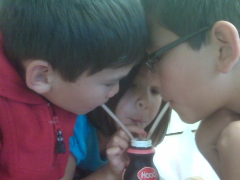 He had purchased one bottle of chocolate milk to share.